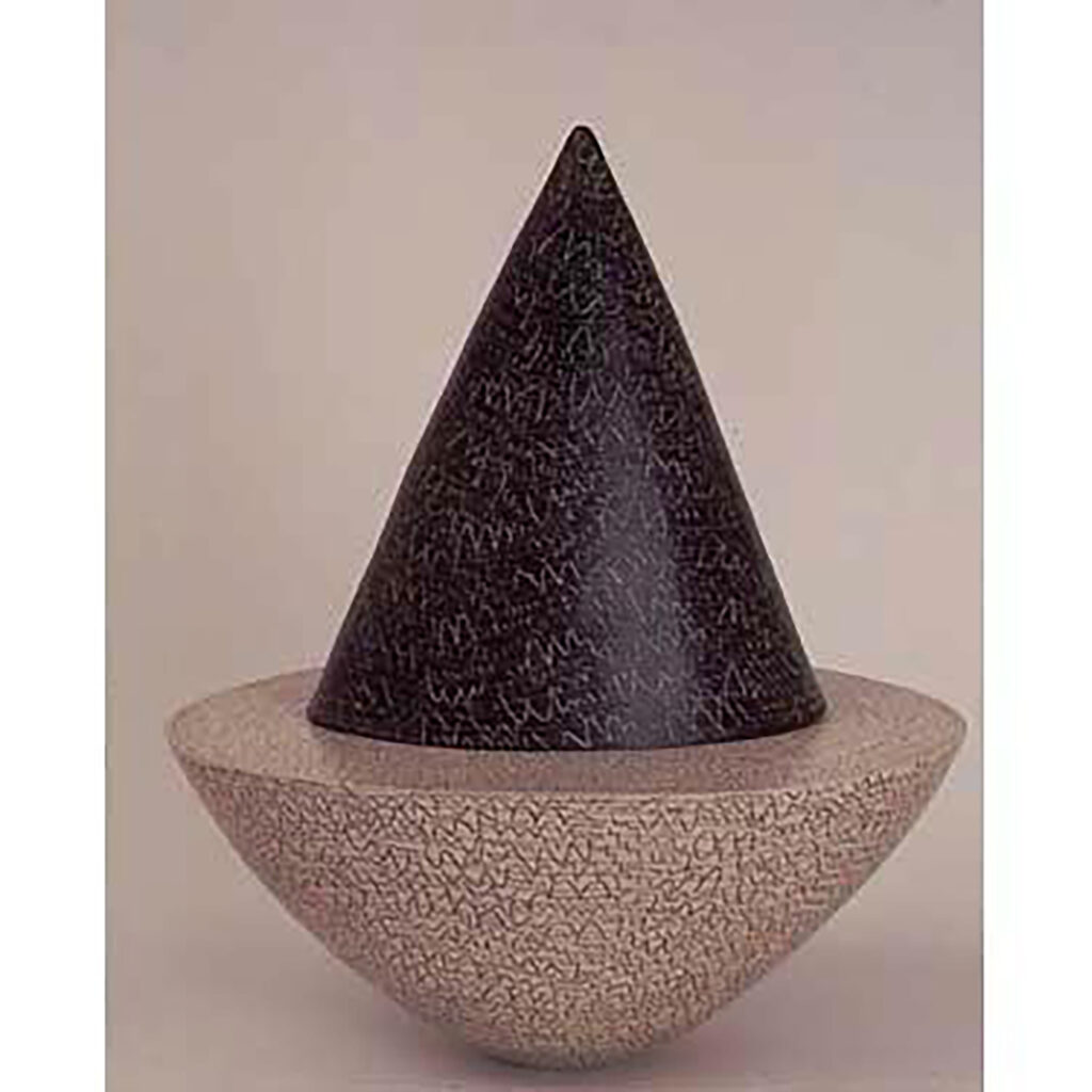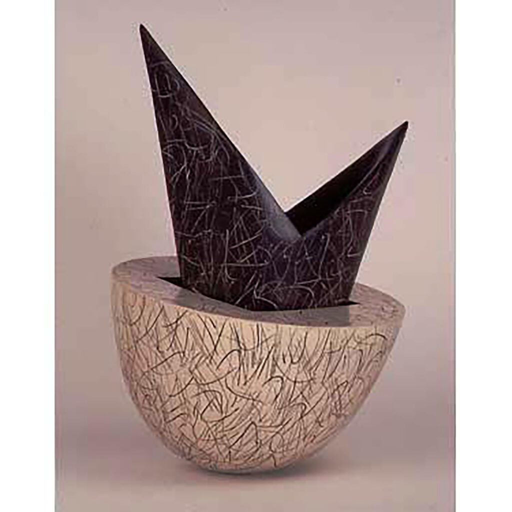 interlocking sections. The inserted element can be removed and placed alongside the other to form a pair, so changing the dynamics of the piece
